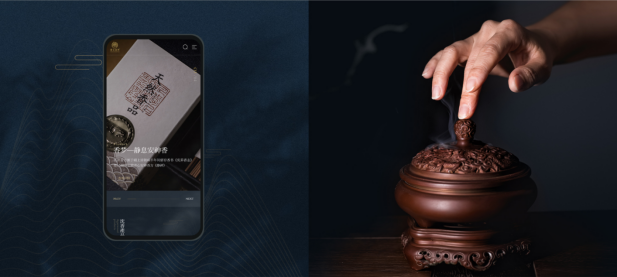 具體到青玄香養這個項目時,我們使用了襯線體,給字里行間帶來松弛感,頁面色彩沒有太浮夸,你把它放到產品的任何使用環境里去都是合適的。同時考慮到VIS系統標識,也延續了外包裝的藏藍與純金色。細節上找對符合燃香的傳統符號,飾從自然的點綴,同時在頁面中加了些路徑動畫,波紋動畫,使得整體效果更具有呼吸感。